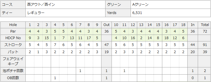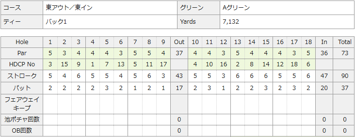 パットはそんなに悪くはなかったのだけどもロングパットの距離感がイマイチ。